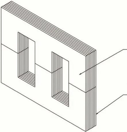 用做干式變壓器的鐵芯,一般選用0.35mm厚的冷軋硅鋼片,按所需鐵芯的尺寸,將它裁成長(zhǎng)形片,然后交疊成“日”字形或“口”字形。從道理上講,若為減小渦流,硅鋼片厚度越薄,拼接的片條越狹窄,效果越好。這不但減小了渦流損耗,降低了溫升,還能節(jié)省硅鋼片的用料。